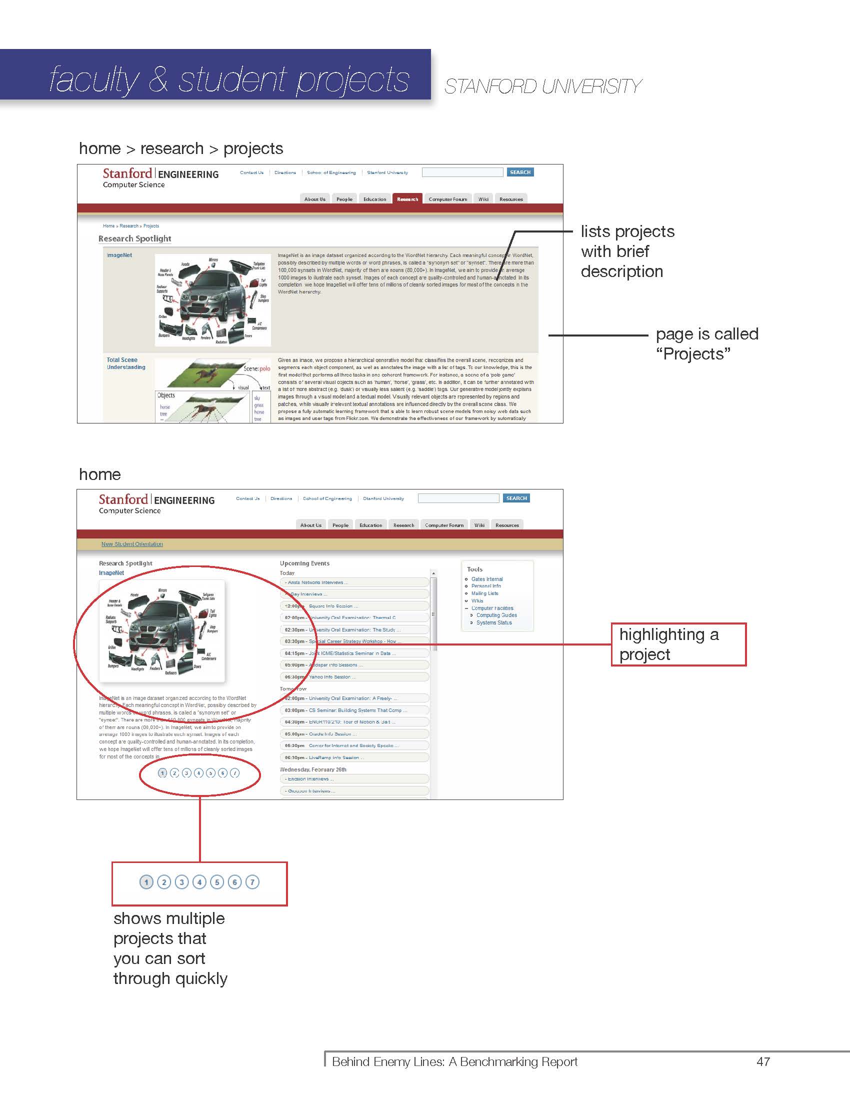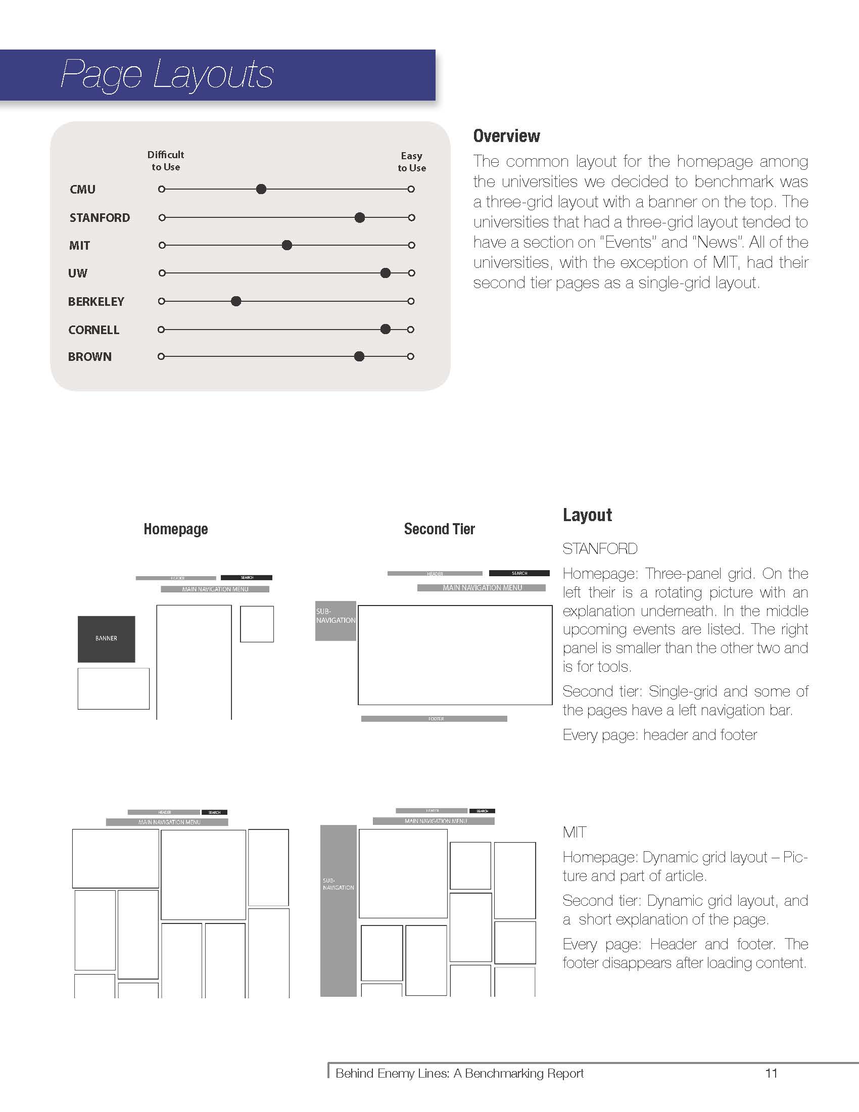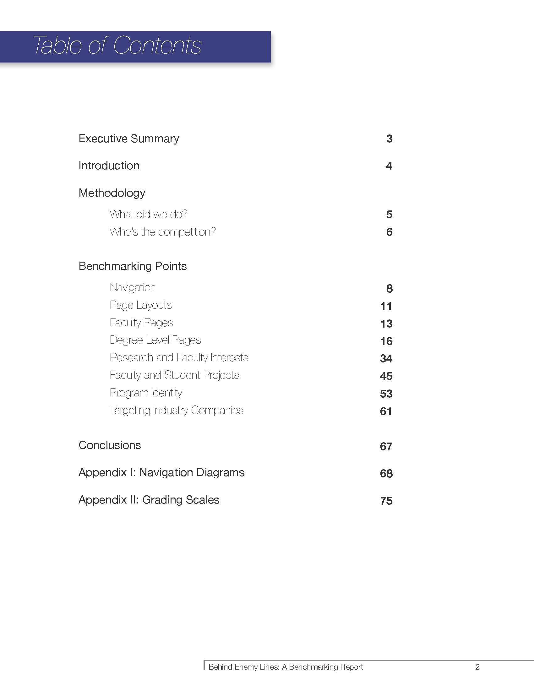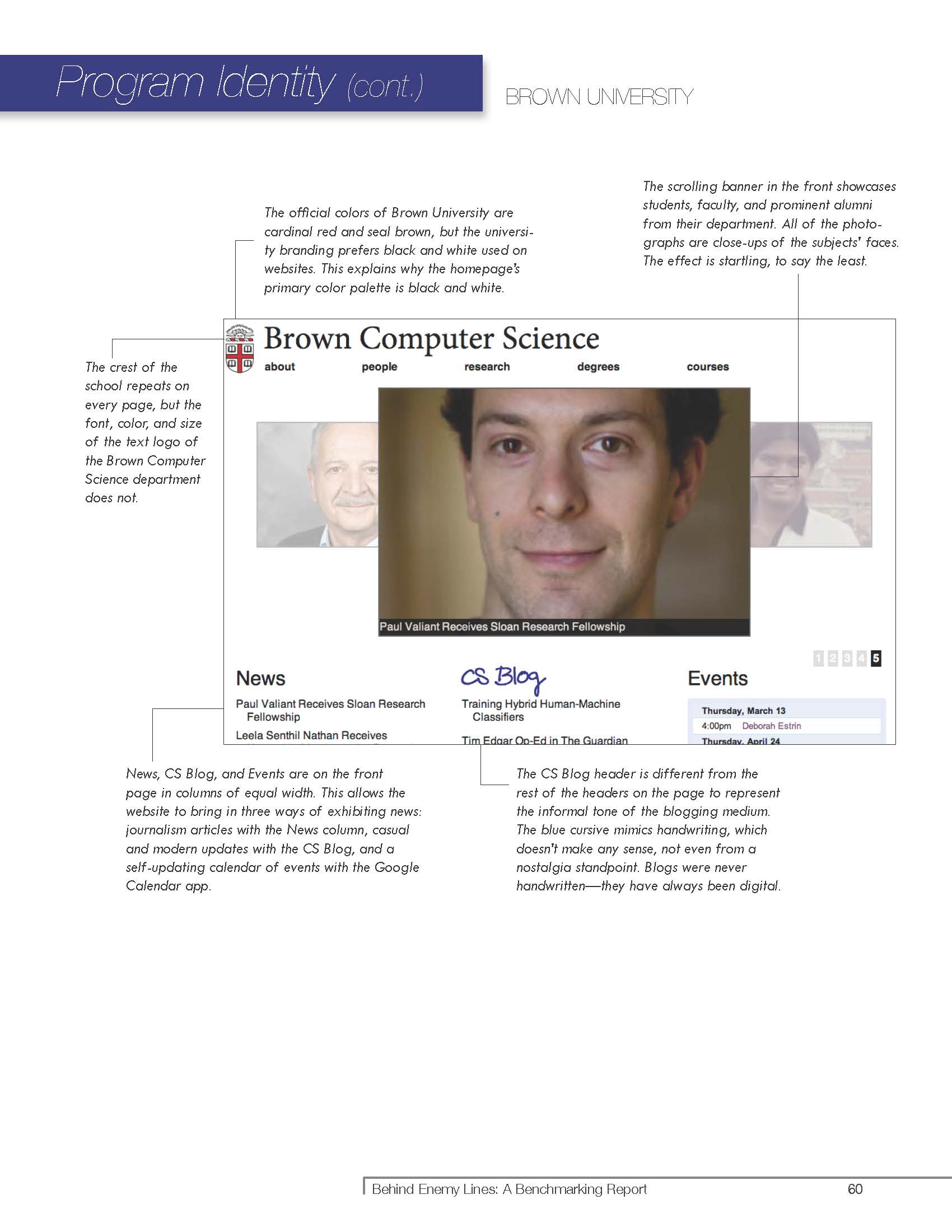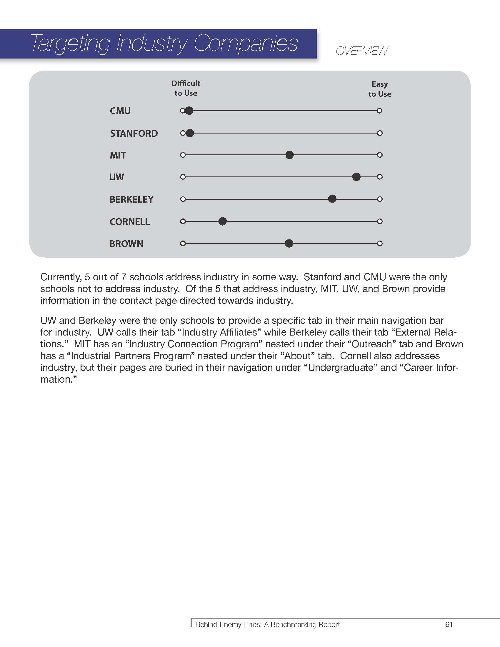 Conducted a competitive analysis of other computer science program websites. In the analysis, we reviewed the following benchmarks: navigation, page layouts, faculty pages, degree level pages, research and faculty interests, faculty and student projects, program identity, and targeting industry companies. Below is the benchmarking report summarizing our methodology and findings.