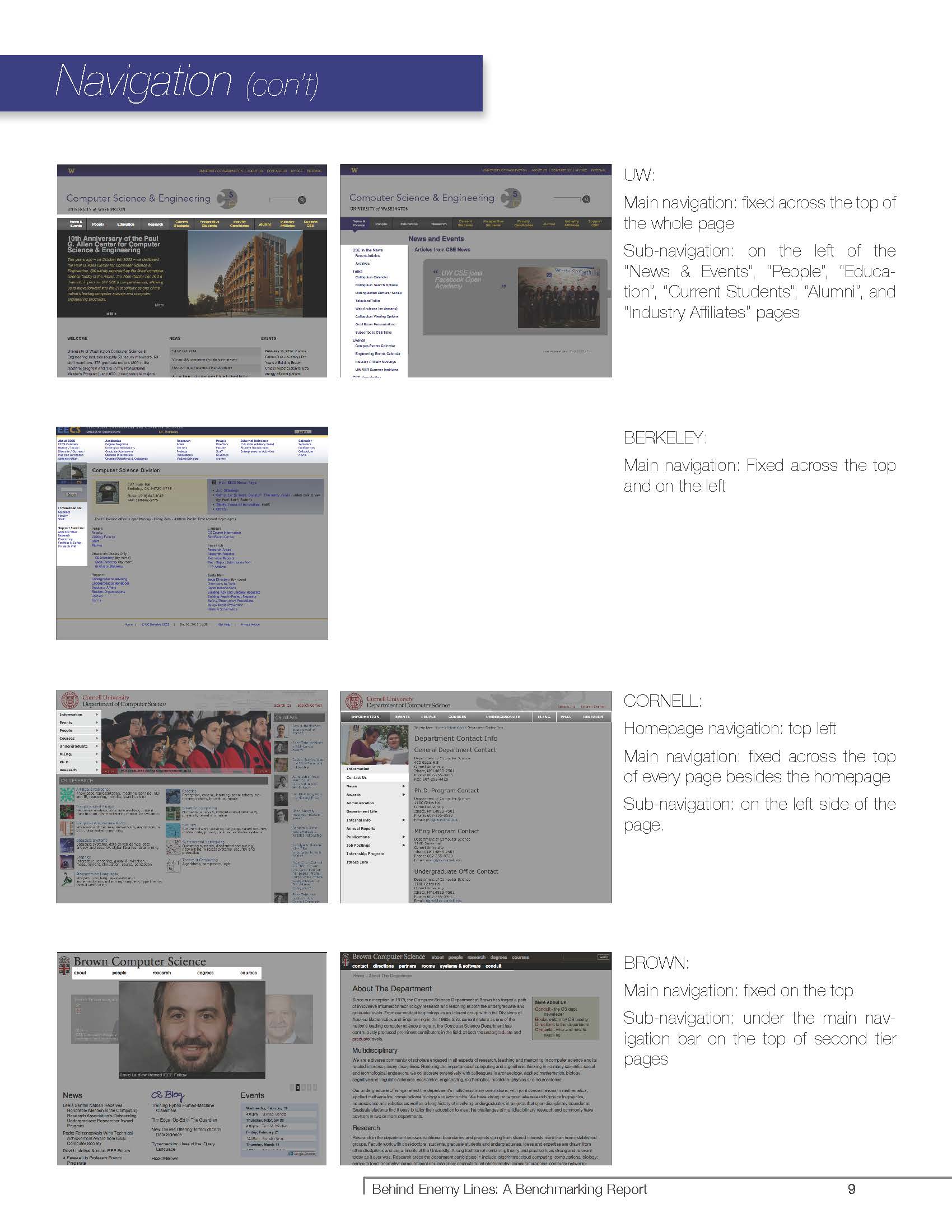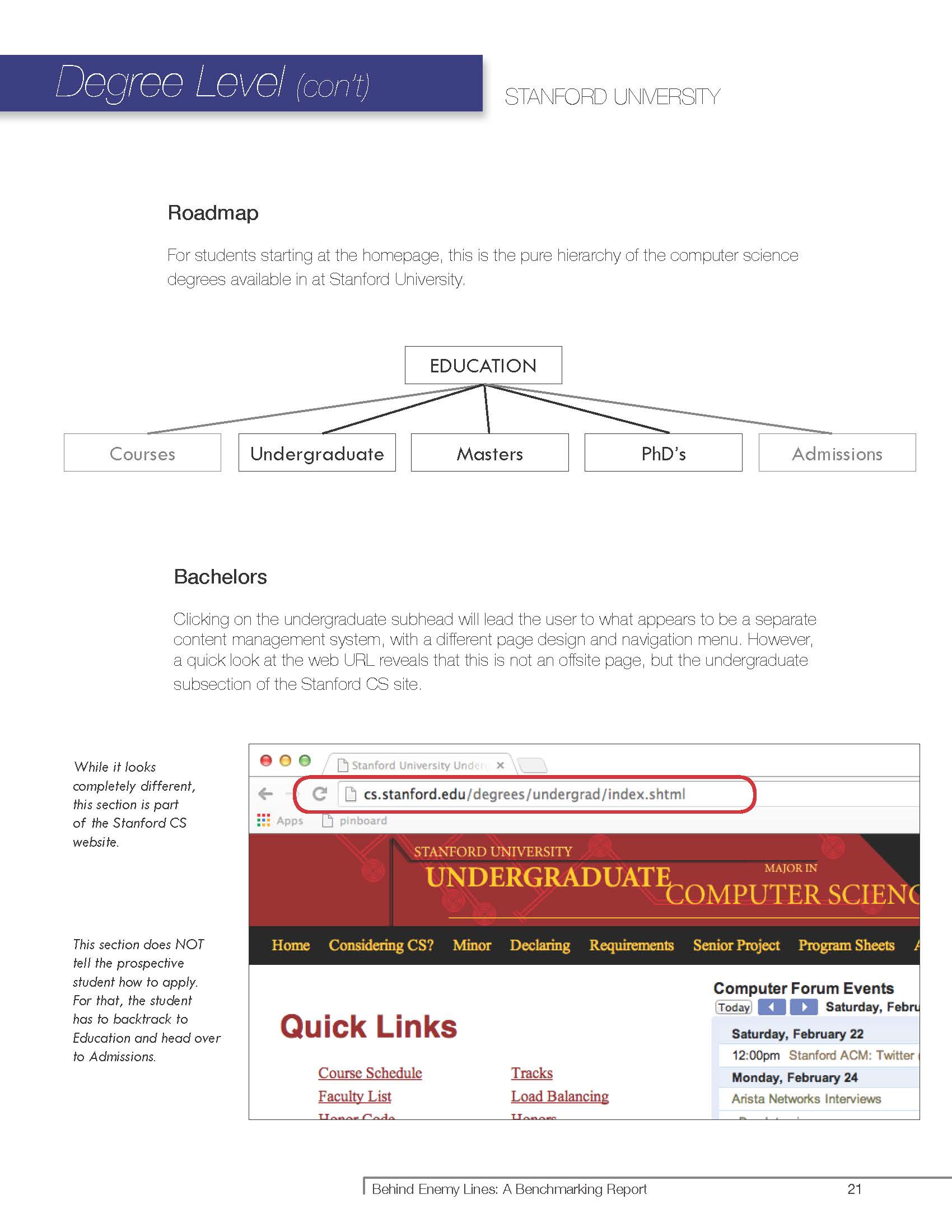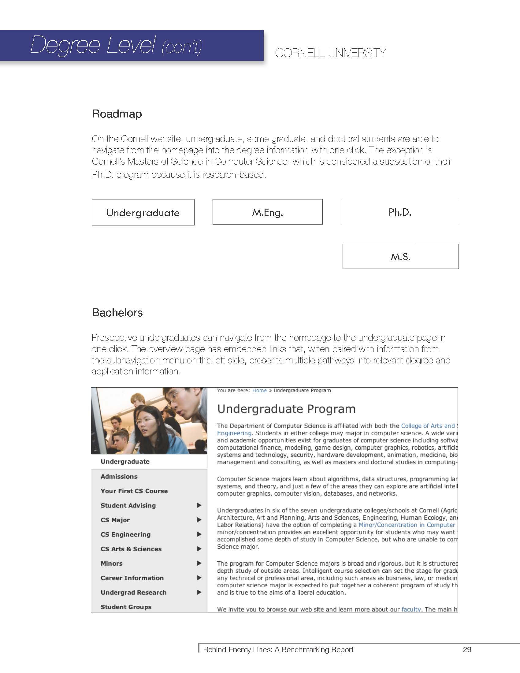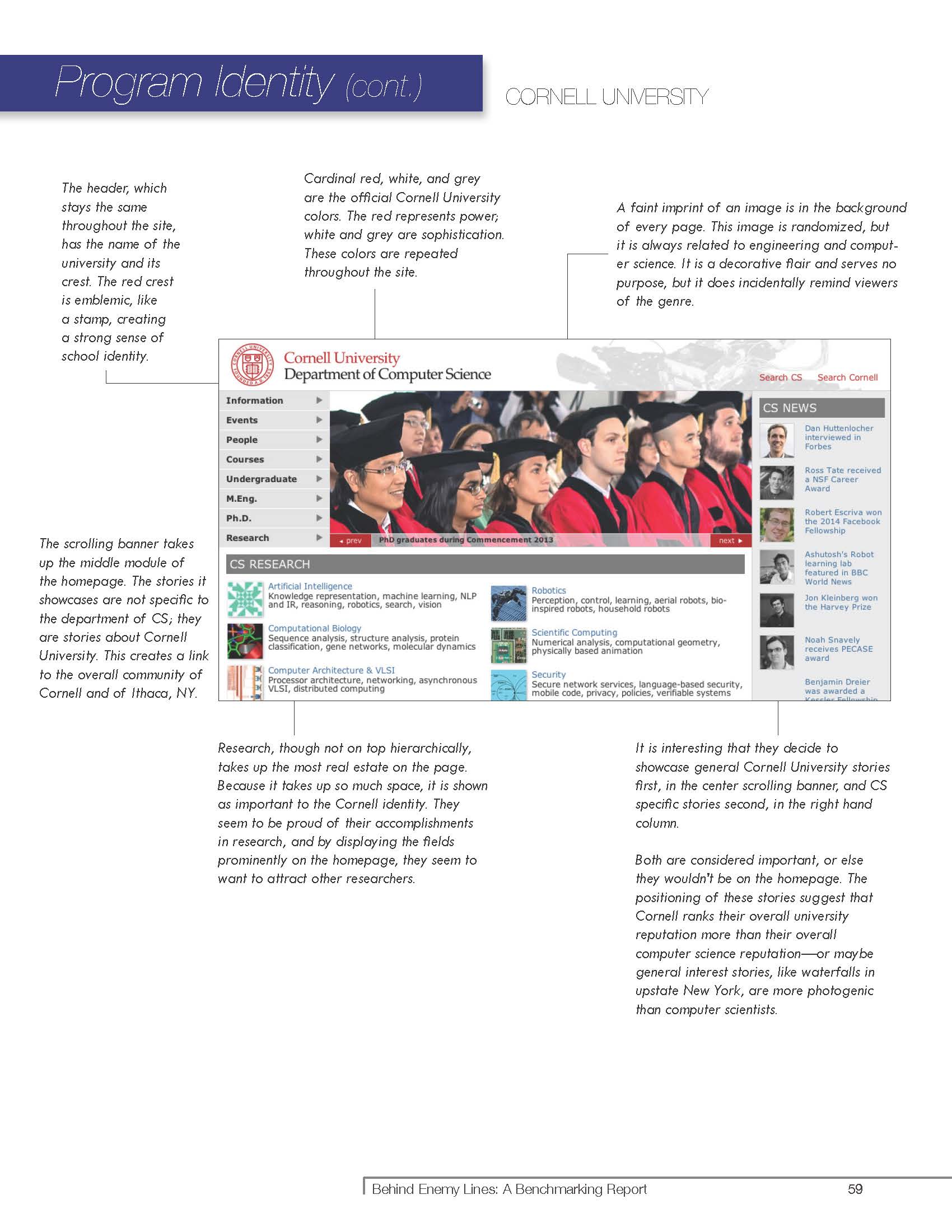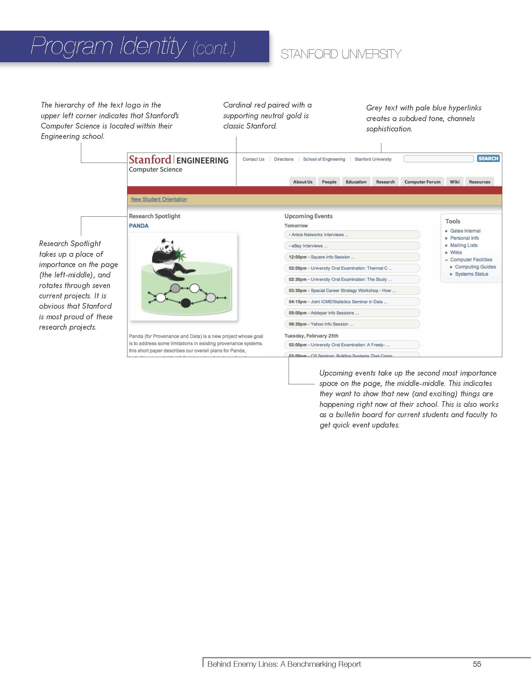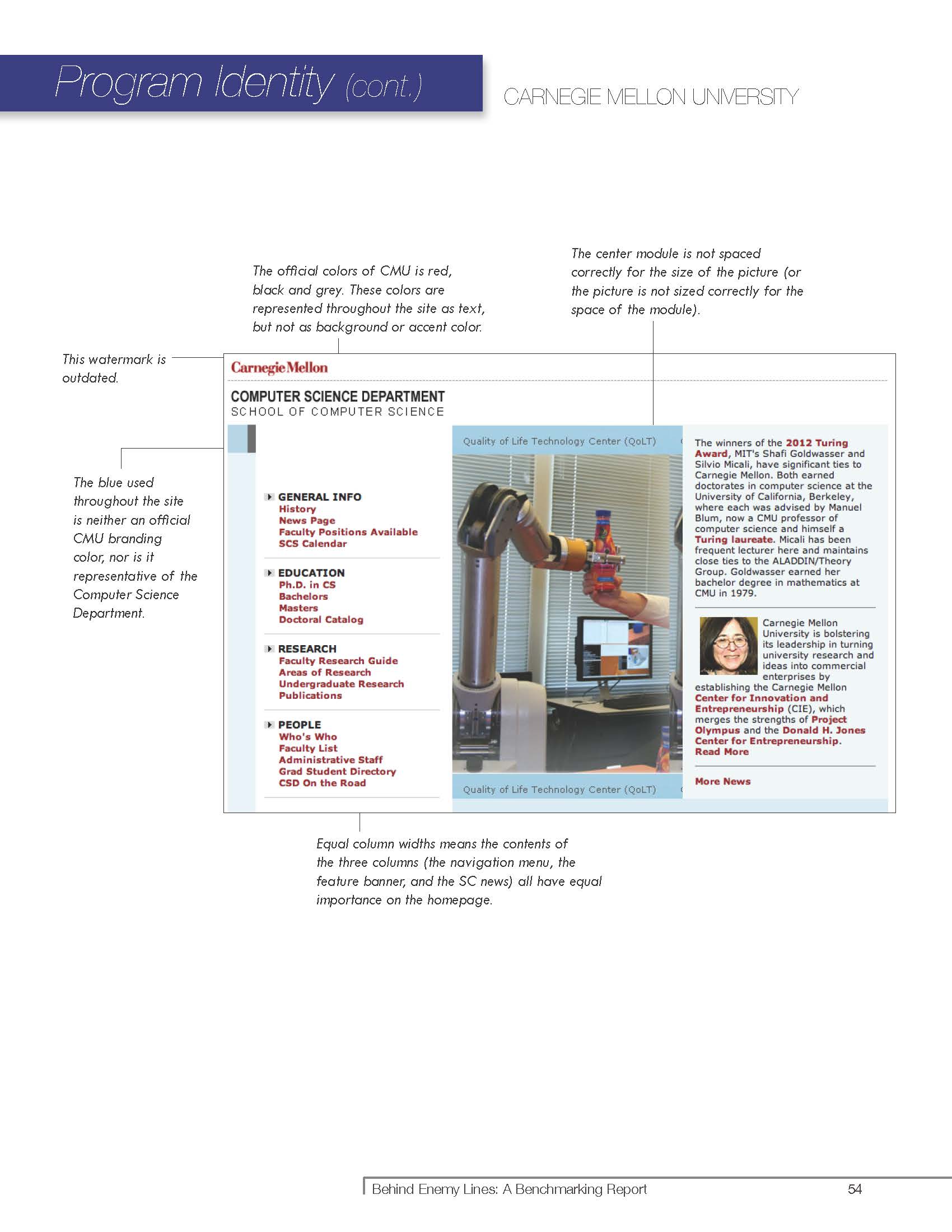 Conducted a competitive analysis of other computer science program websites. In the analysis, we reviewed the following benchmarks: navigation, page layouts, faculty pages, degree level pages, research and faculty interests, faculty and student projects, program identity, and targeting industry companies. Below is the benchmarking report summarizing our methodology and findings.