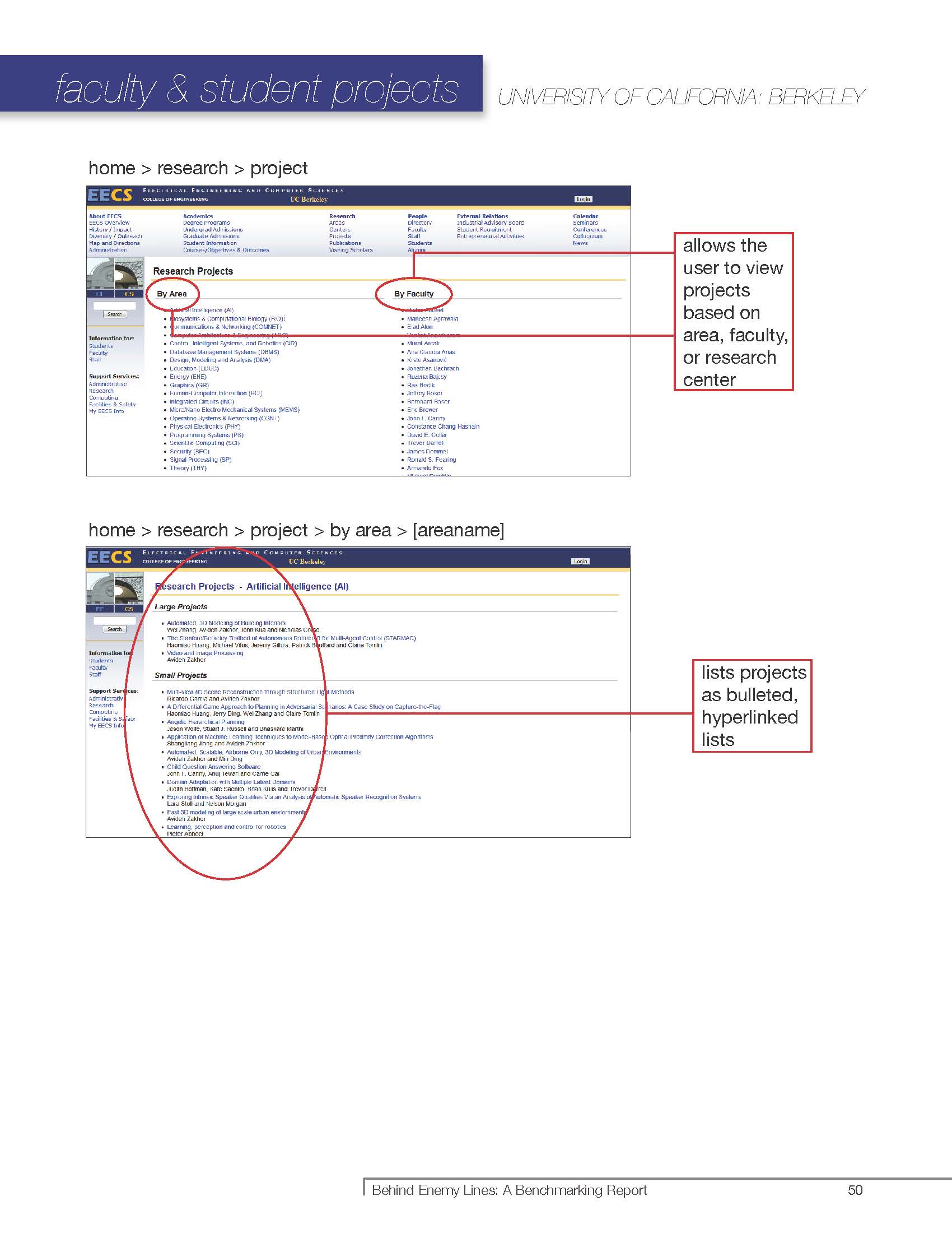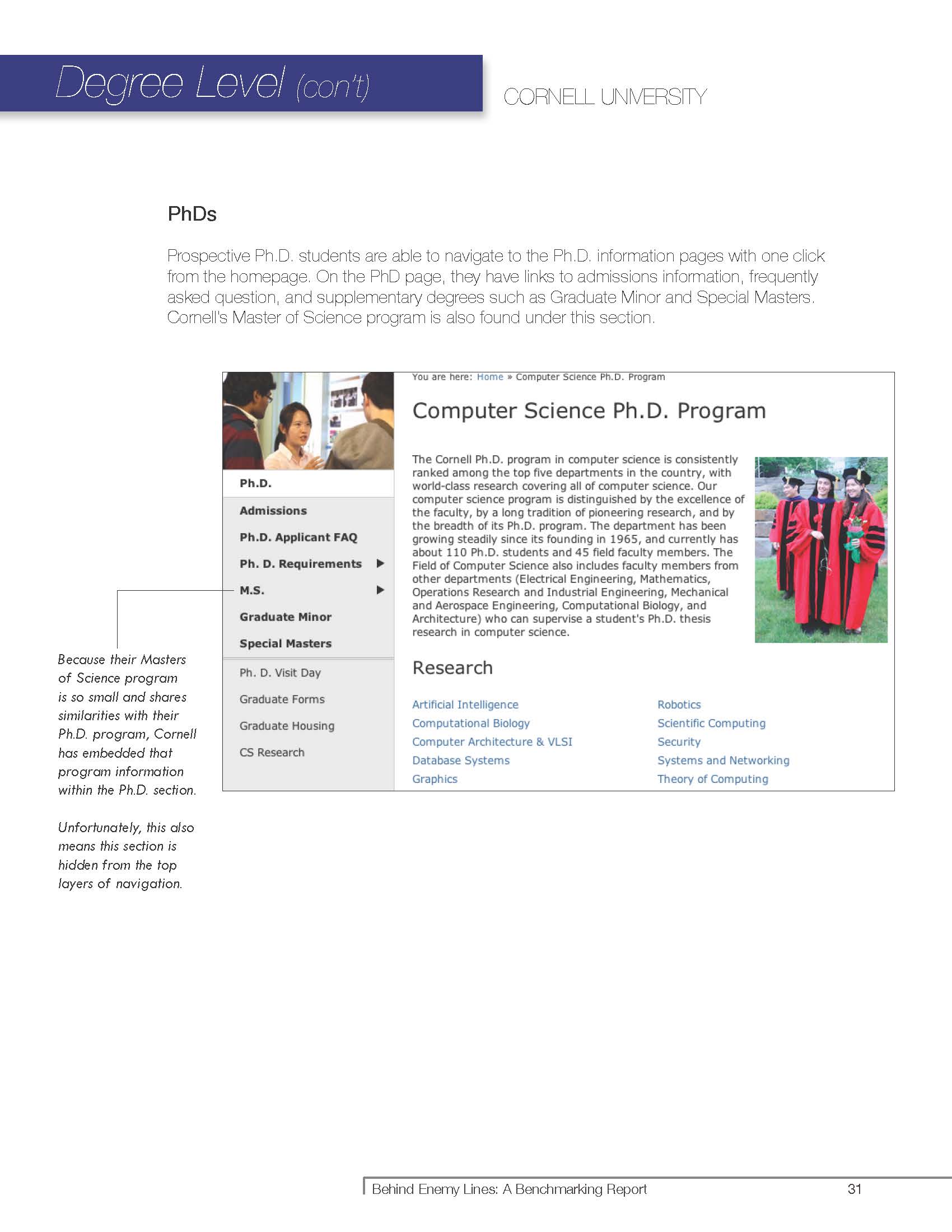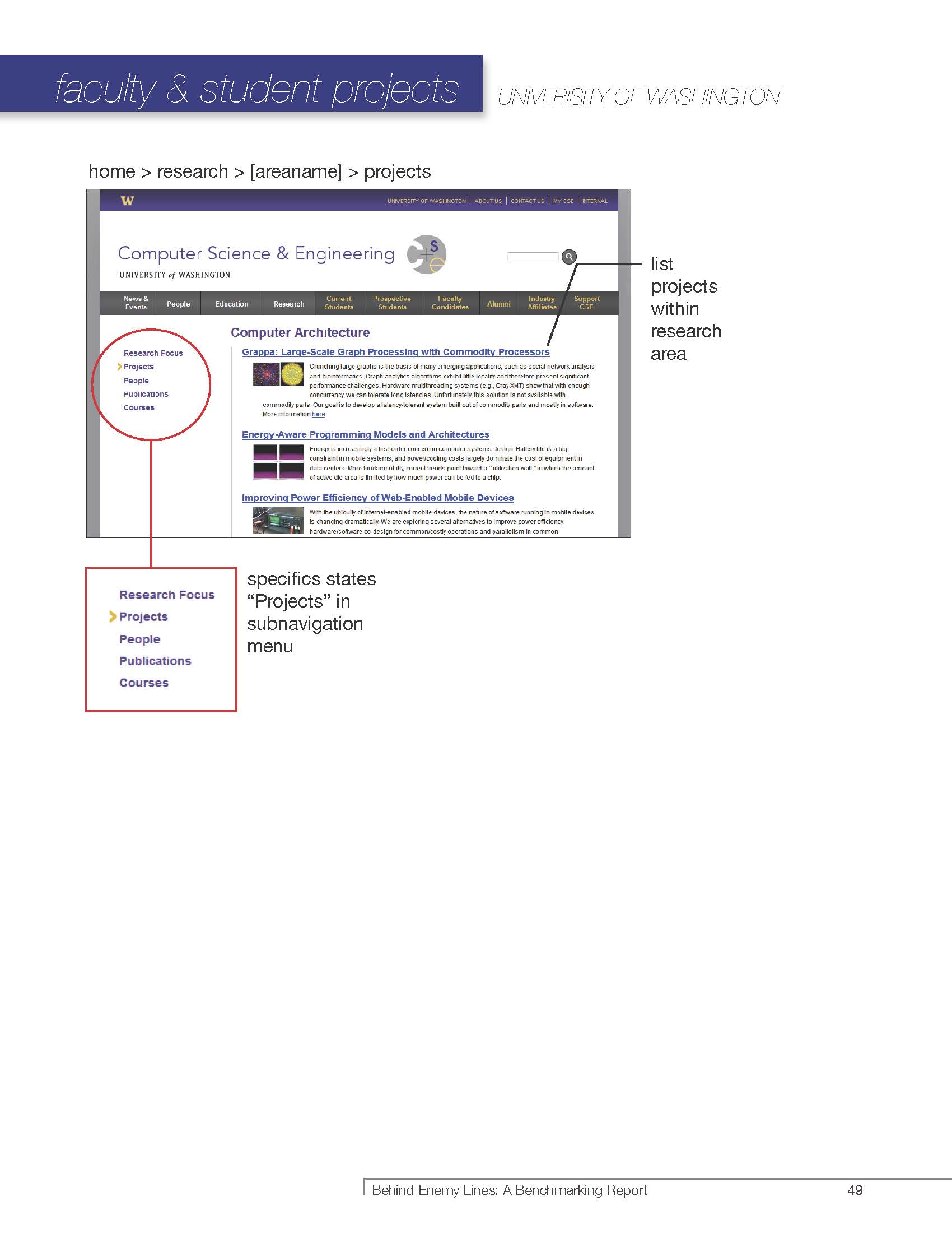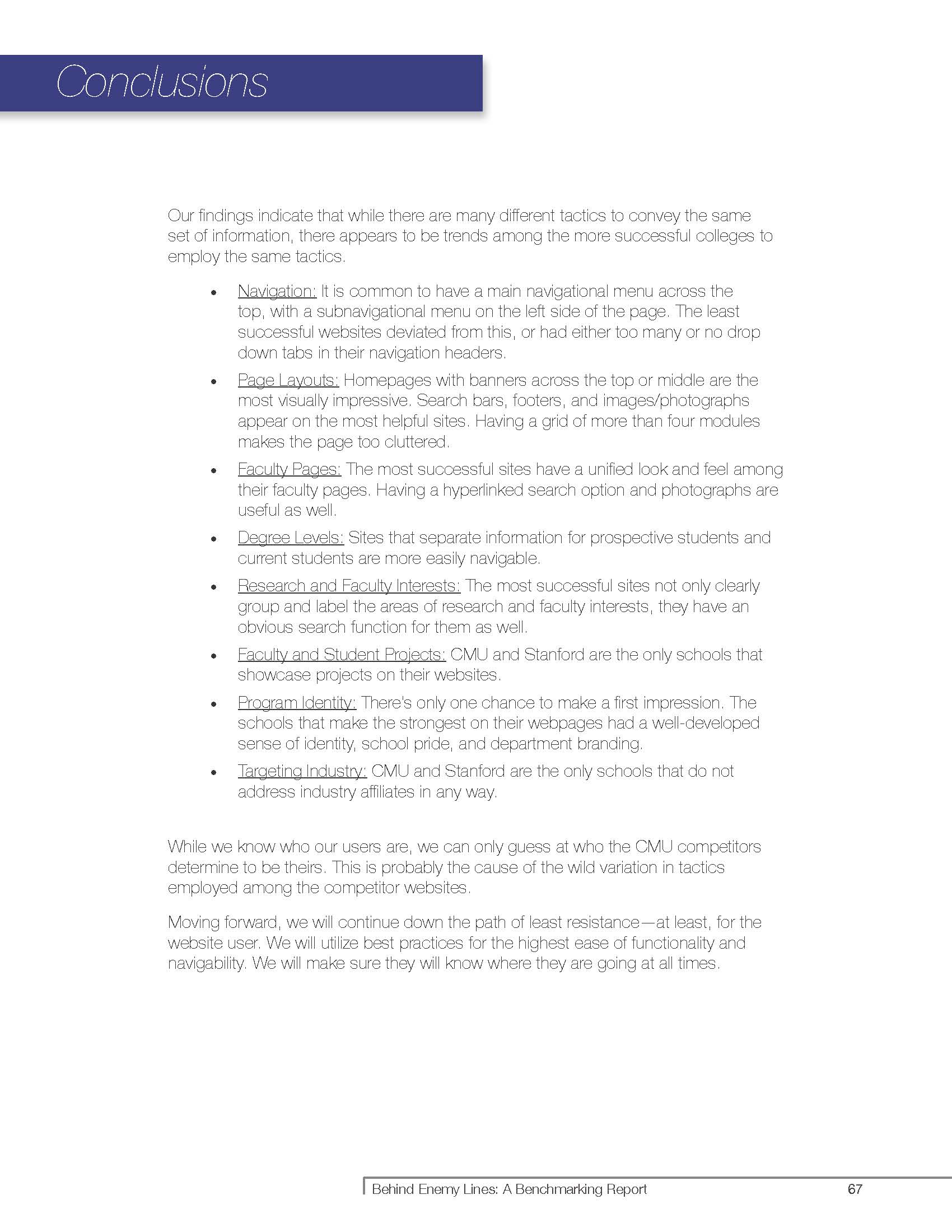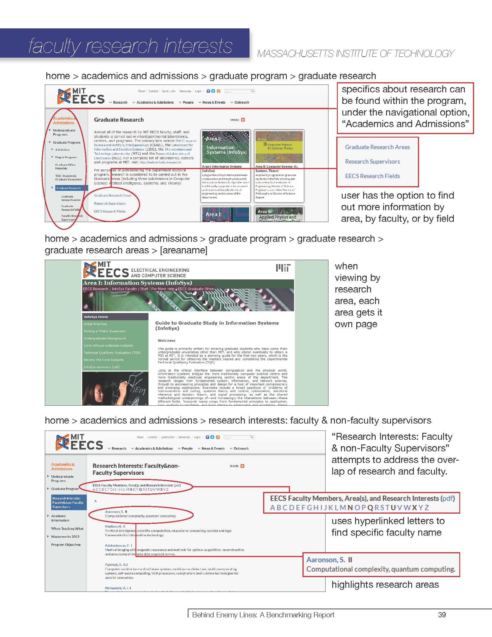 Conducted a competitive analysis of other computer science program websites. In the analysis, we reviewed the following benchmarks: navigation, page layouts, faculty pages, degree level pages, research and faculty interests, faculty and student projects, program identity, and targeting industry companies. Below is the benchmarking report summarizing our methodology and findings.
