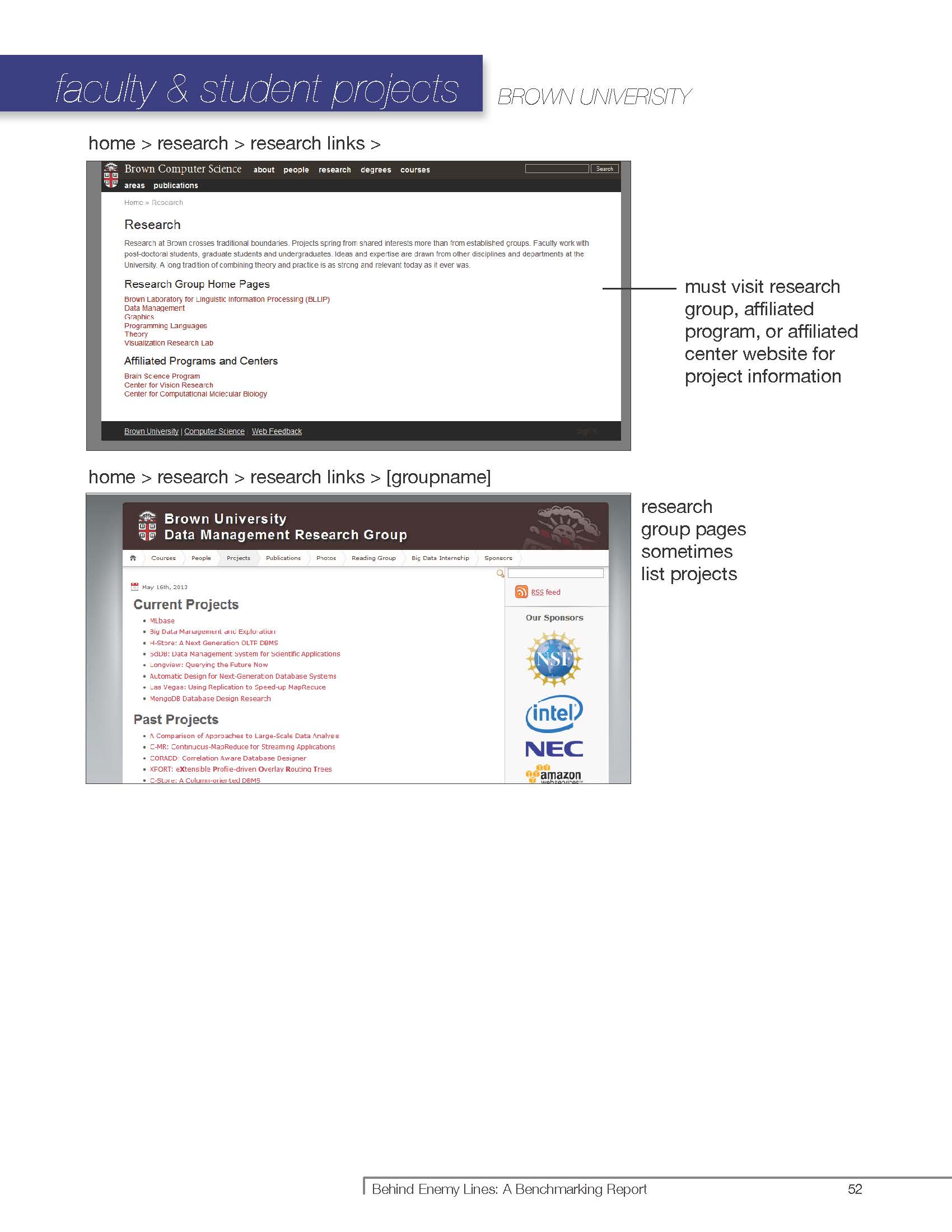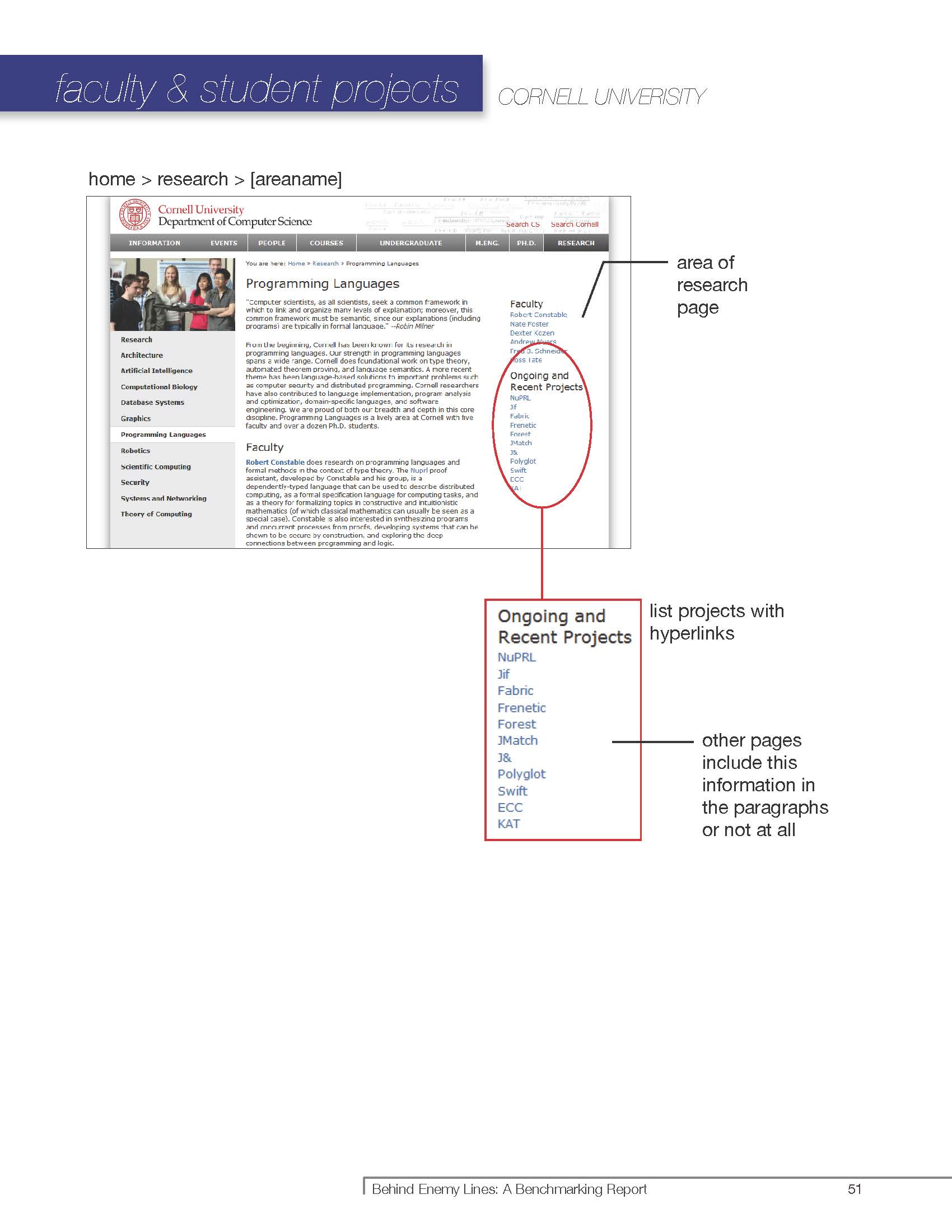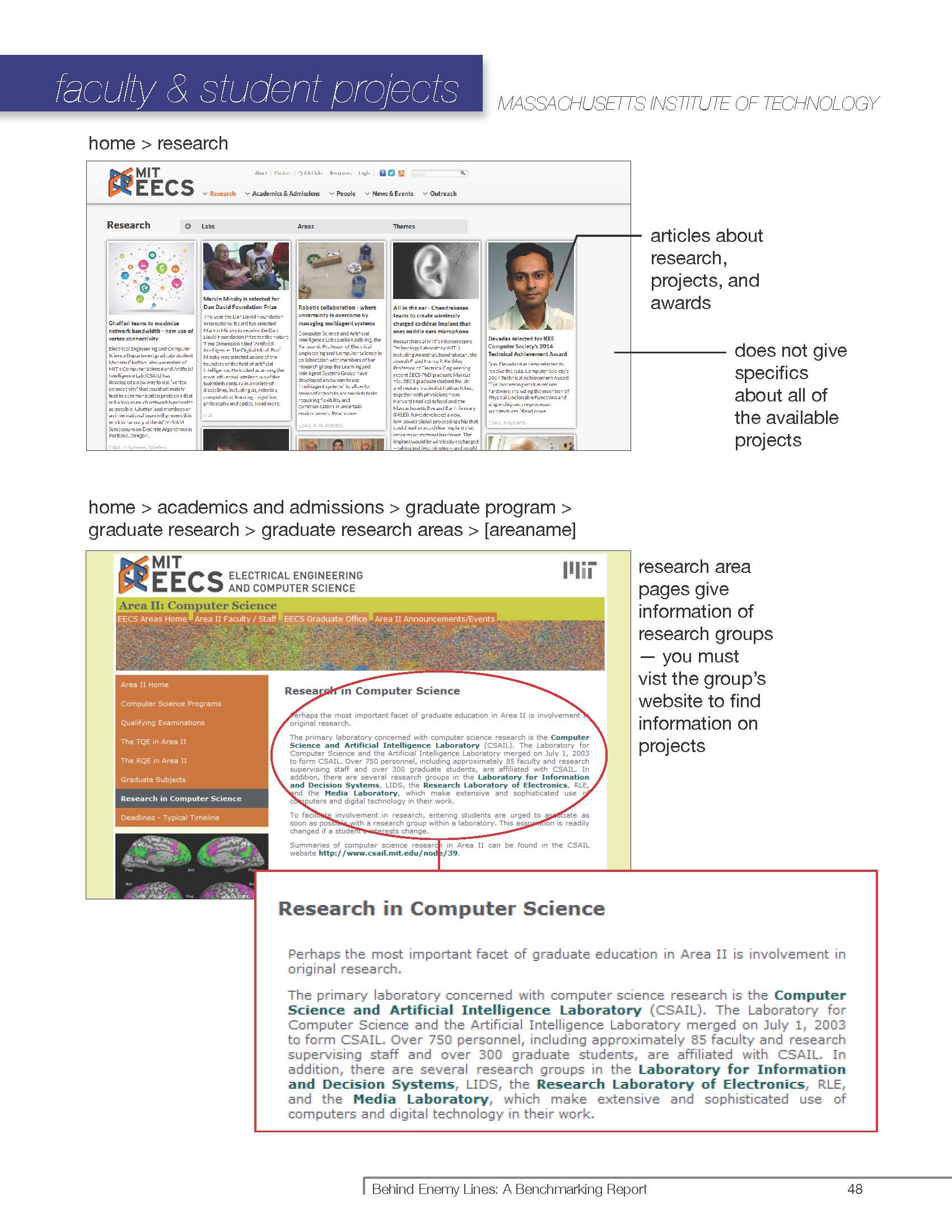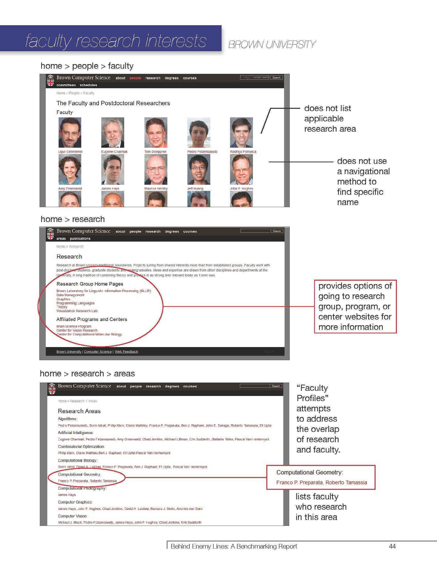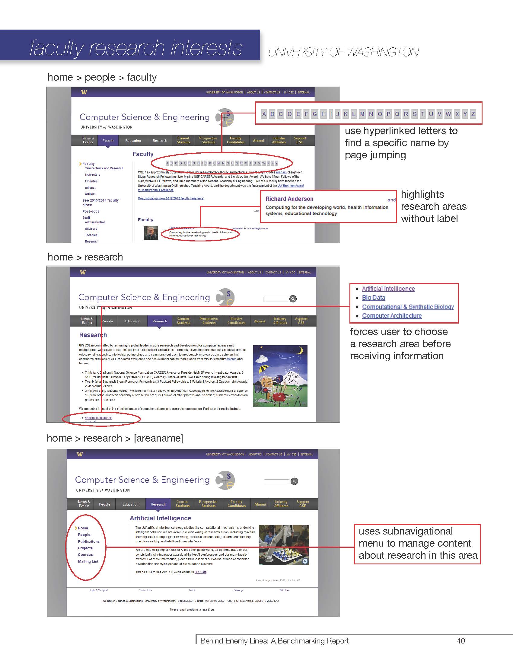 Conducted a competitive analysis of other computer science program websites. In the analysis, we reviewed the following benchmarks: navigation, page layouts, faculty pages, degree level pages, research and faculty interests, faculty and student projects, program identity, and targeting industry companies. Below is the benchmarking report summarizing our methodology and findings.