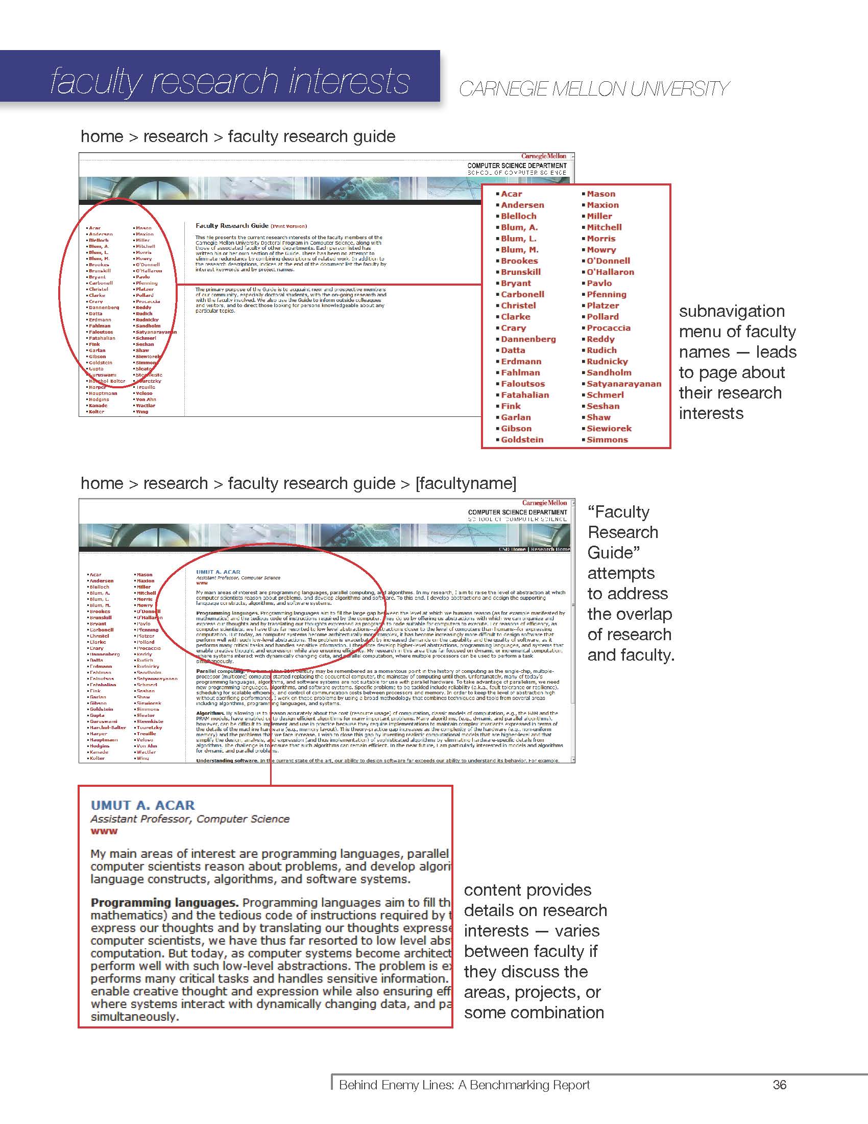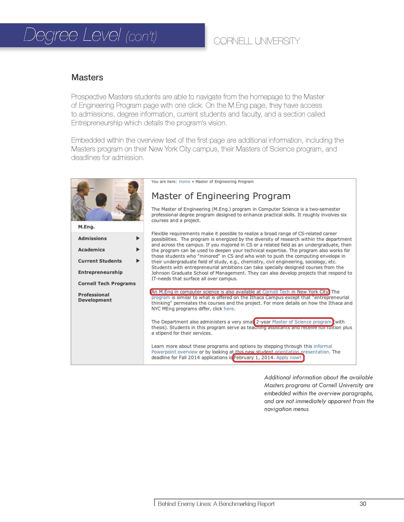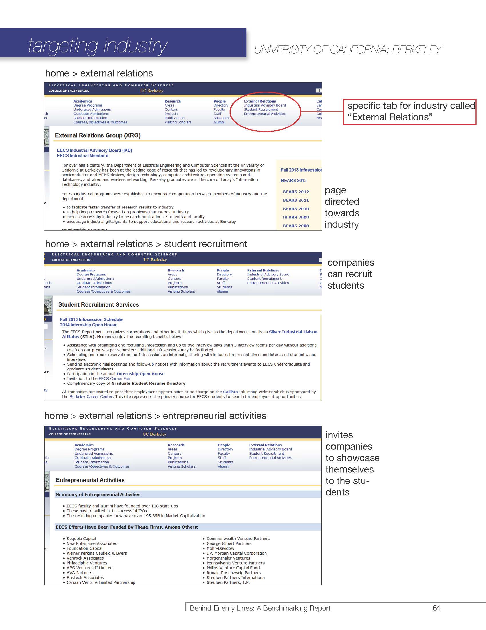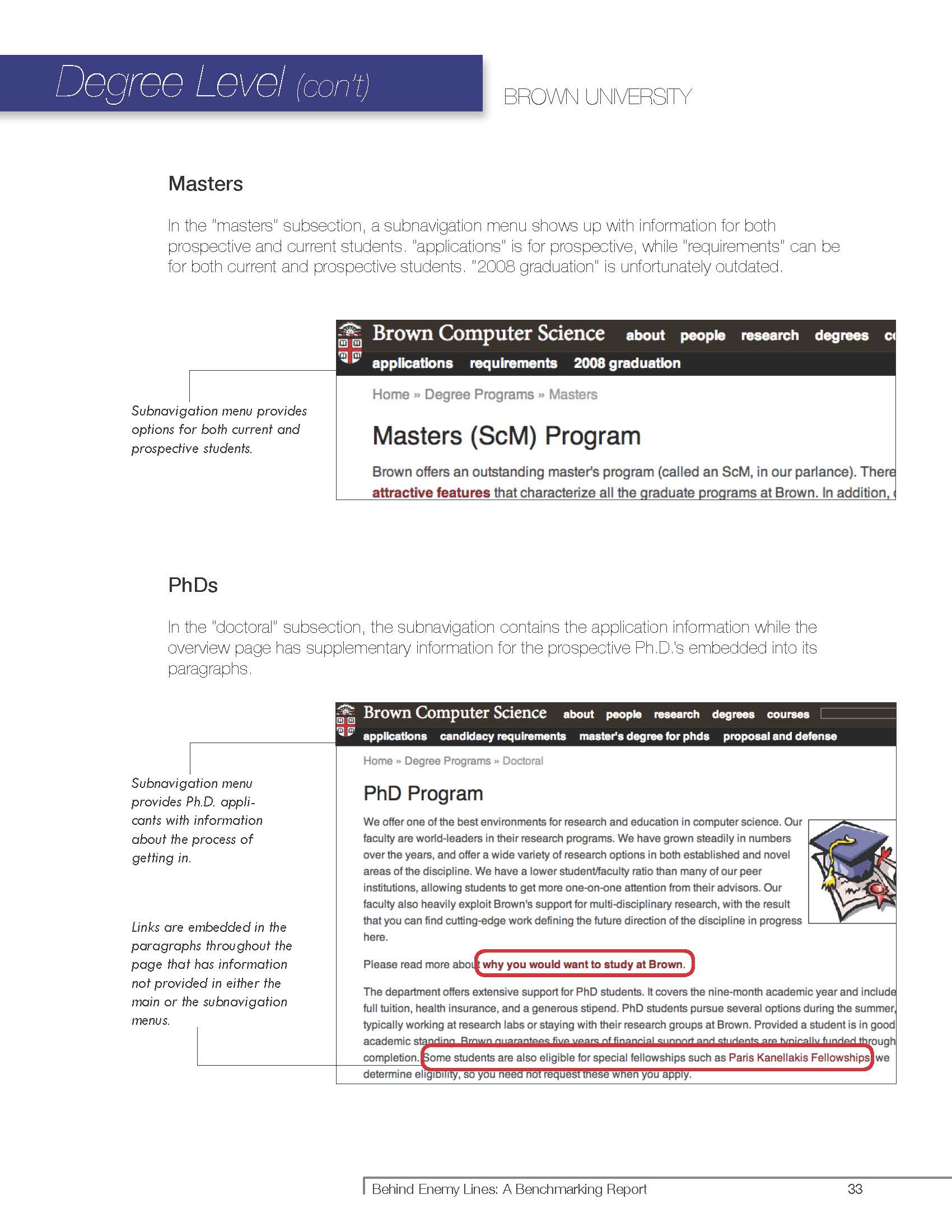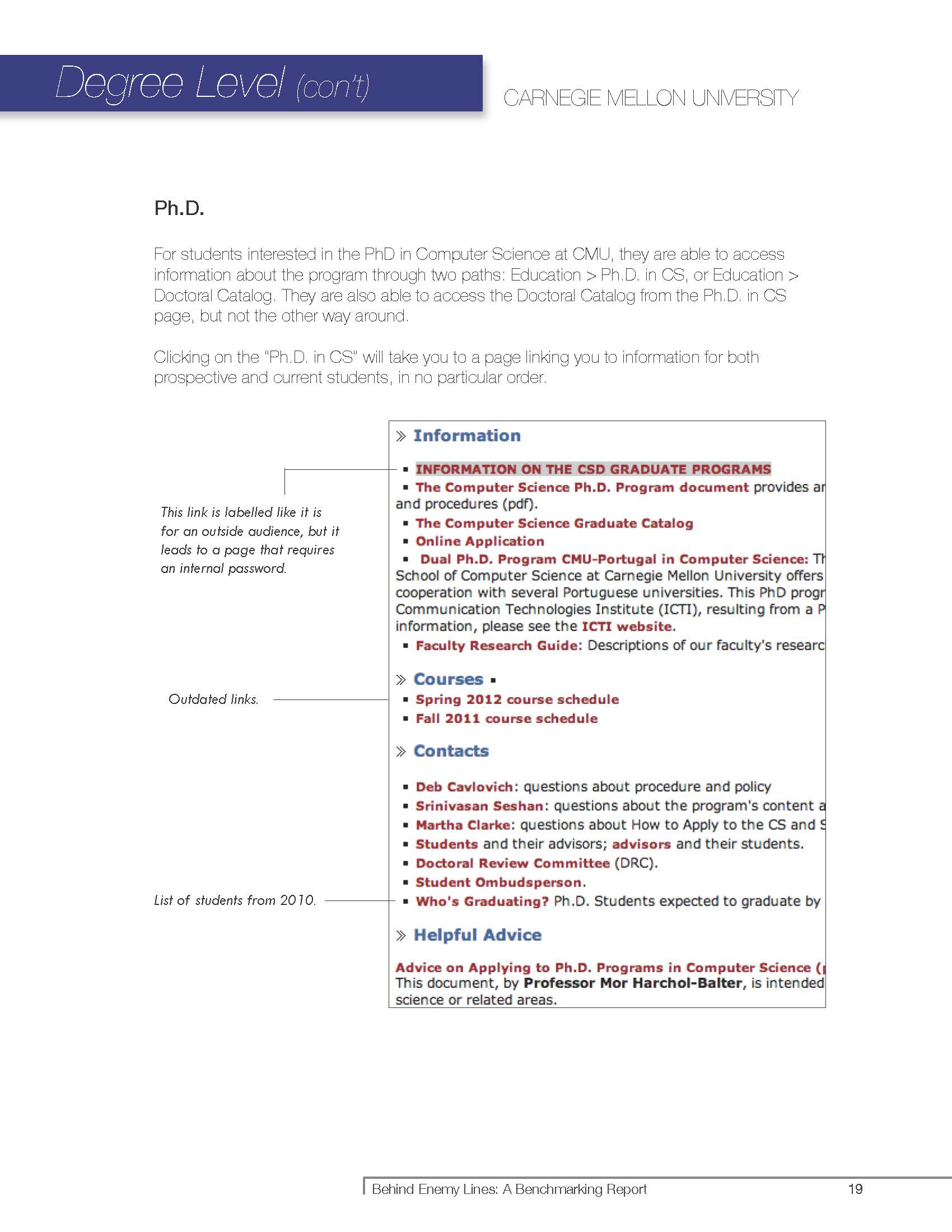 Conducted a competitive analysis of other computer science program websites. In the analysis, we reviewed the following benchmarks: navigation, page layouts, faculty pages, degree level pages, research and faculty interests, faculty and student projects, program identity, and targeting industry companies. Below is the benchmarking report summarizing our methodology and findings.
